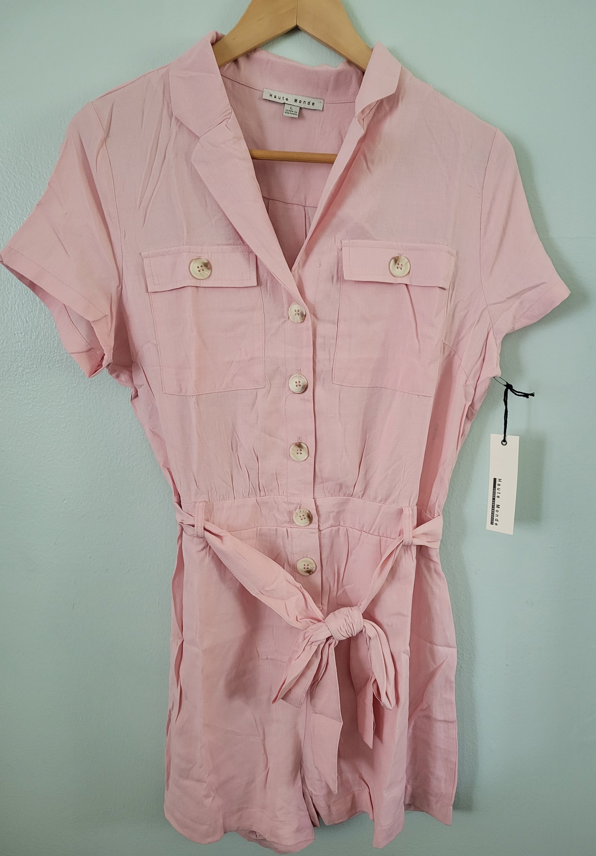 Collard Solid Belted Button- Down Romper