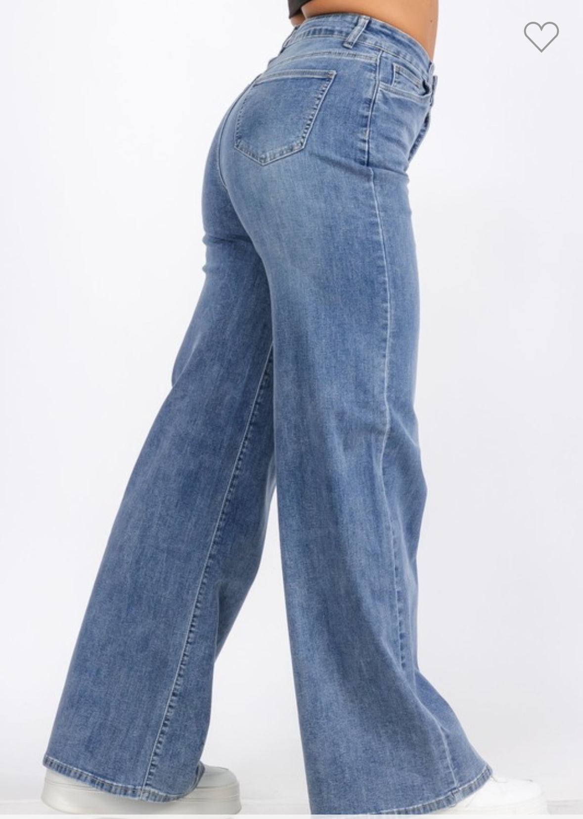 - Stylish High-Rise Design: These wide leg jeans feature a flattering high-waisted cut that accentuates your curves and elongates your legs.